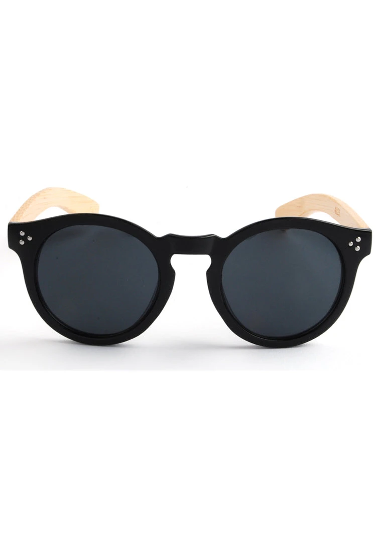 Black Frames With Bamboo Arms And Smoke Lens